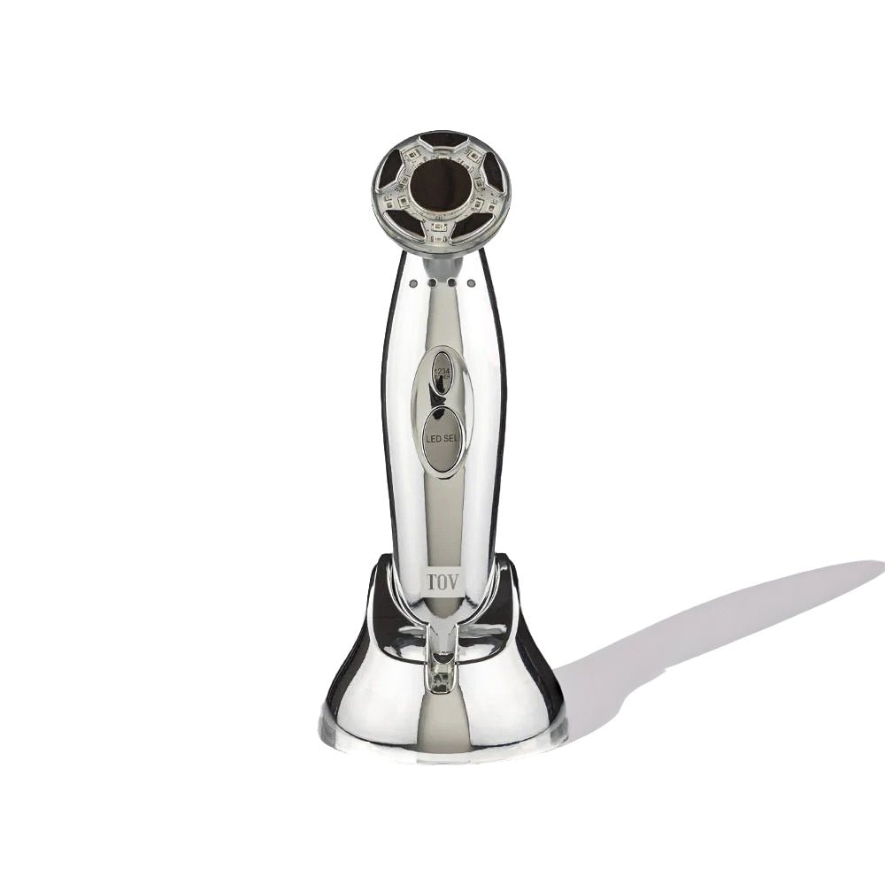 The Time Master Pro is a professional-grade facial device that uses ultrasound, EMS, and LED technology to firm, lift, and rejuvenate skin.