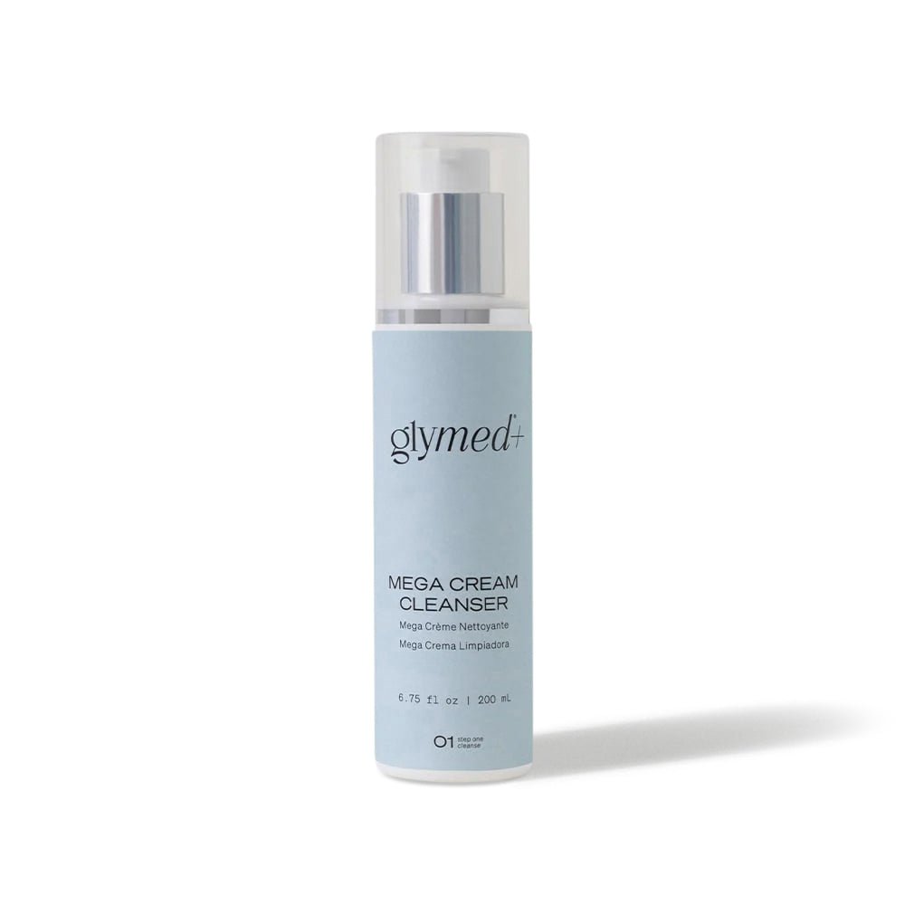GlyMed Plus Mega Cream Cleanser is an ultra-gentle cream cleanser that effectively dissolves makeup and oil, providing a deep, yet soothing and hydrating cleanse.