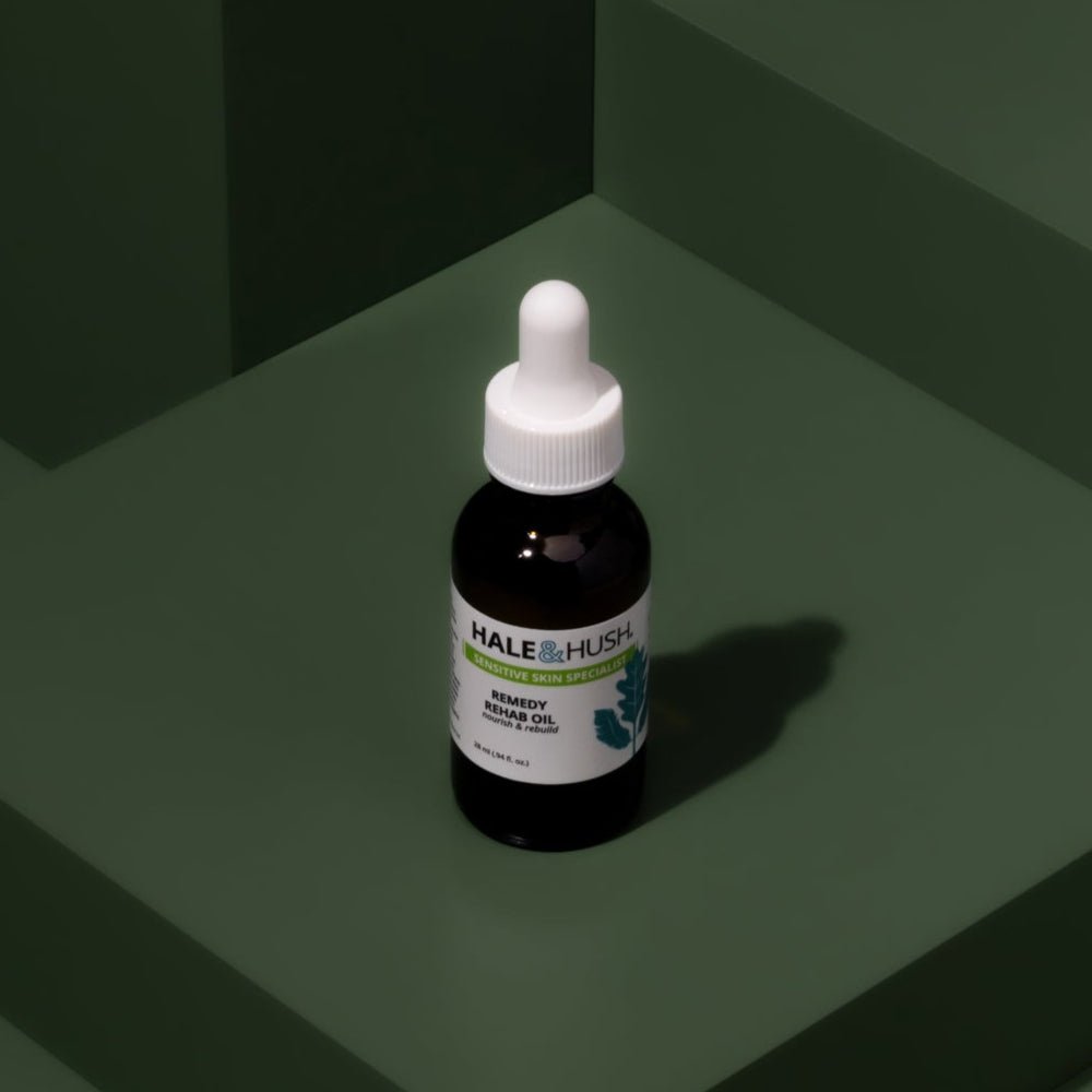 Hale & Hush Remedy Rehab Oil is a lightweight, fast-absorbing facial oil formulated to nourish and hydrate while reducing inflammation and rebuilding the skin.