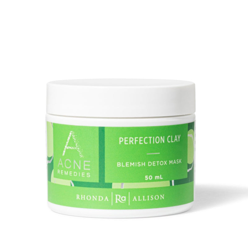 Rhonda Allison Perfection Clay is a therapeutic detox mask that draws impurities from the skin with a blend of clays while reducing bacteria with sulfur and resorcinol.