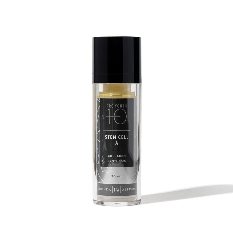Rhonda Allison Stem Cell A combines encapsulated retinaldehyde and mandelic acid to stimulate collagen and elastin, reduce inflammation, fines lines and wrinkles.