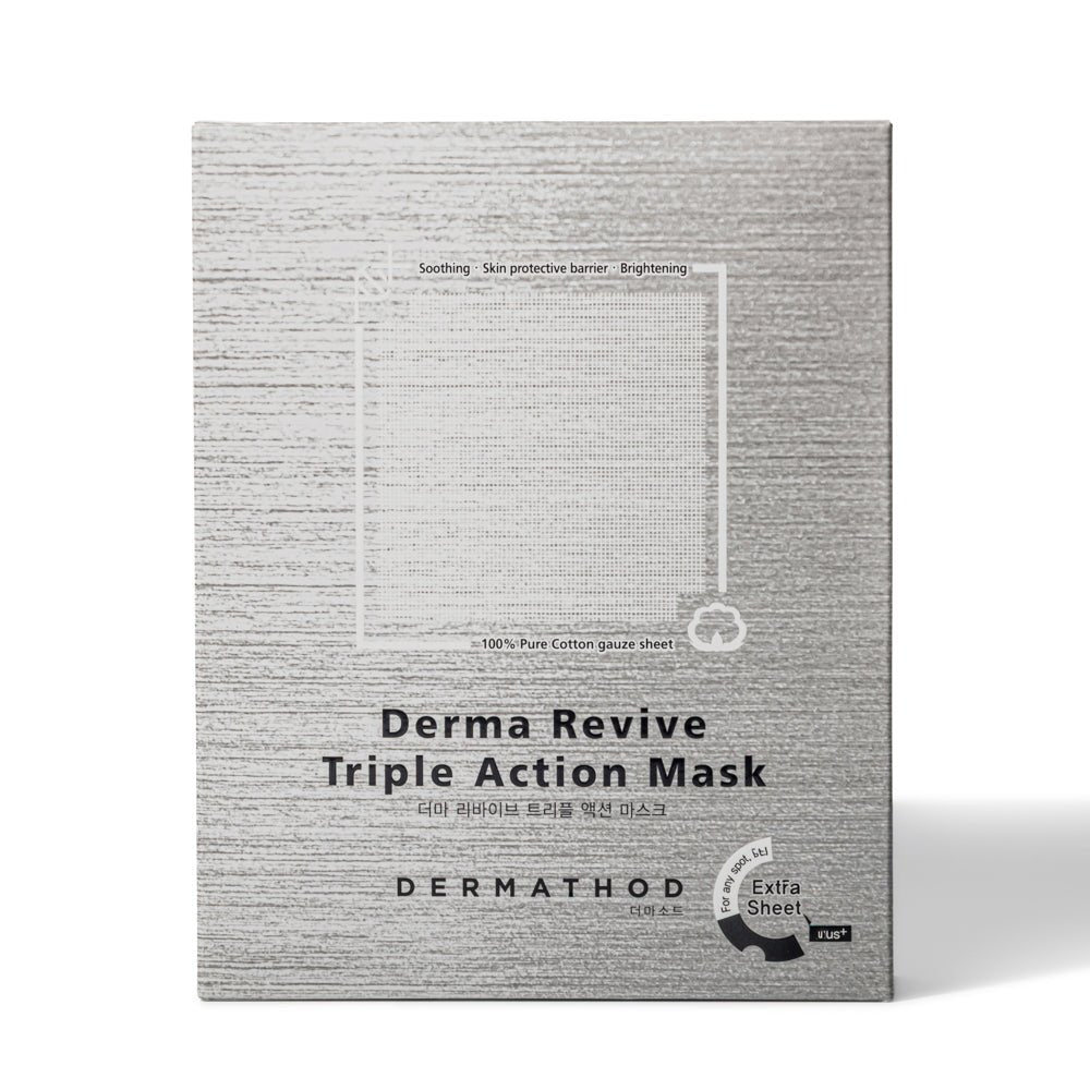 Dermathod Revive Triple Action Sheet Mask is a cooling, barrier restoring treatment designed to calm stressed skin and accelerate recovery. Formulated with glacial water, Centella Asiatica, ceramide NP, and hydrating humectants, this sheet mask helps quickly reduce skin temperature, replenish moisture, and reinforce the skin barrier.