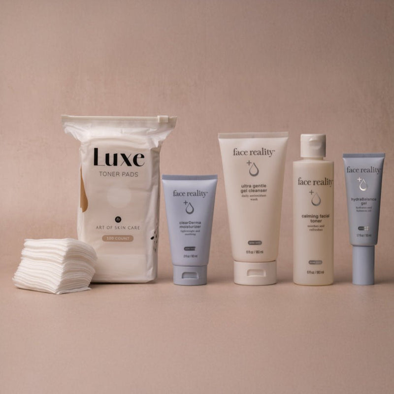 Face Reality Acne-Safe Kit (Normal/Combination Skin) soothes and treats acne-prone skin—plus free Luxe Toner Pads
