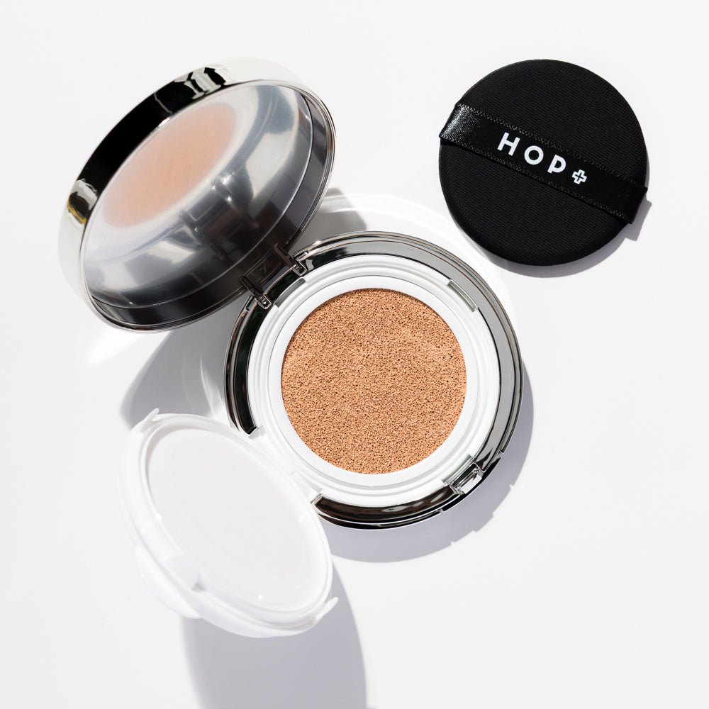 For an additional PLLA plumping boost, follow up with a light spritz of Hop+ Stem-Cell Mist after applying the Sun Cushion.