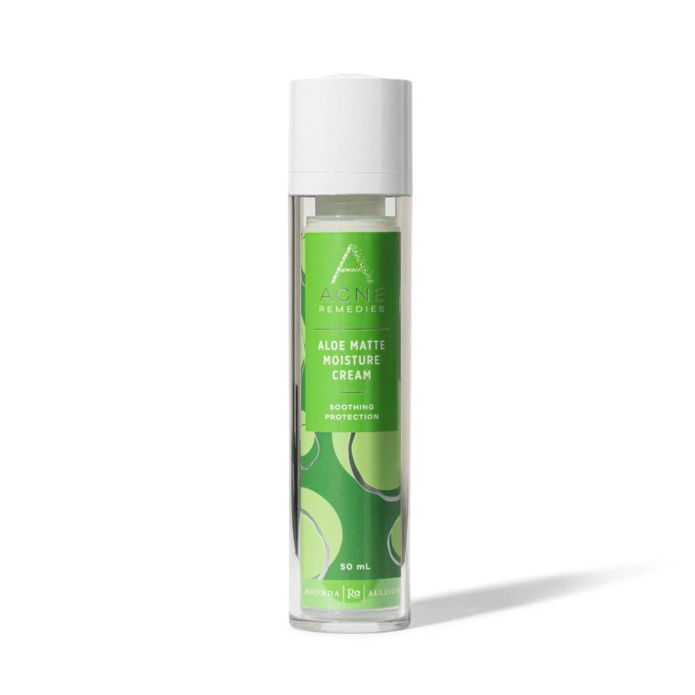 Rhonda Allison Aloe Matte Moisture Cream is a lightweight daily moisturizer for oily skin with aloe, green tea, and antioxidants to hydrate, balance oil, and boost natural UV defense.