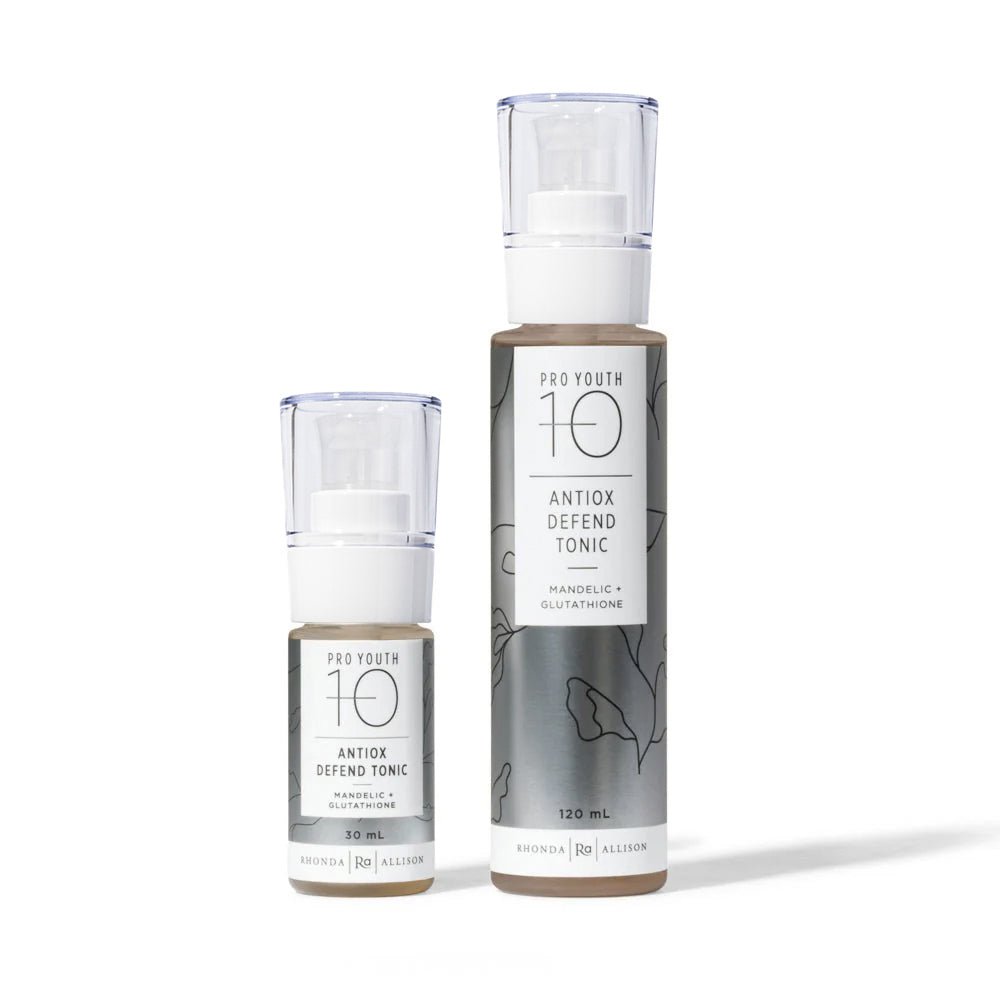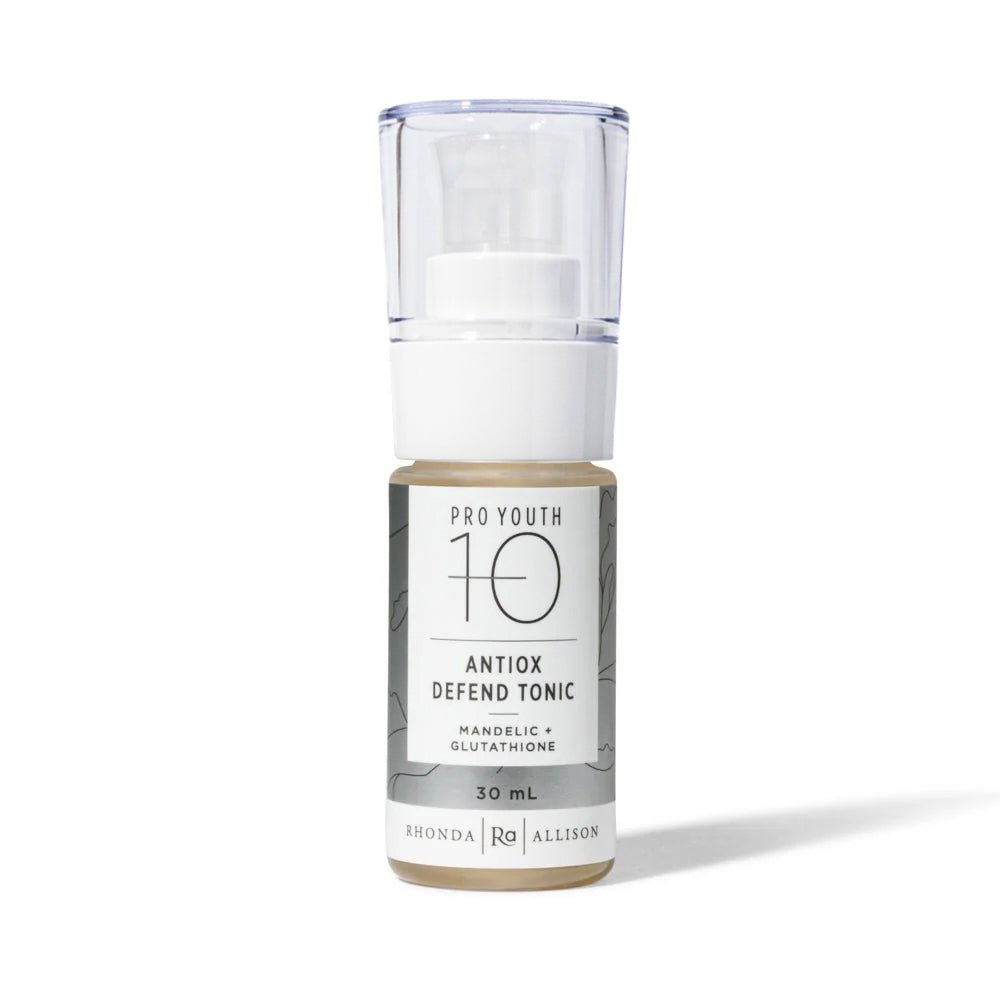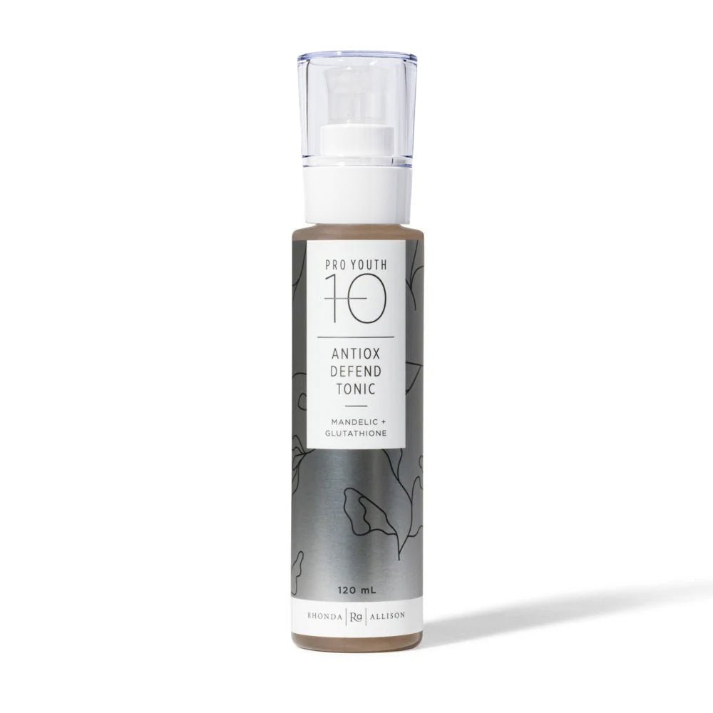 Rhonda Allison Antiox Defend Tonic refines texture, tightens pores, and fights breakouts with antioxidant-rich protection.