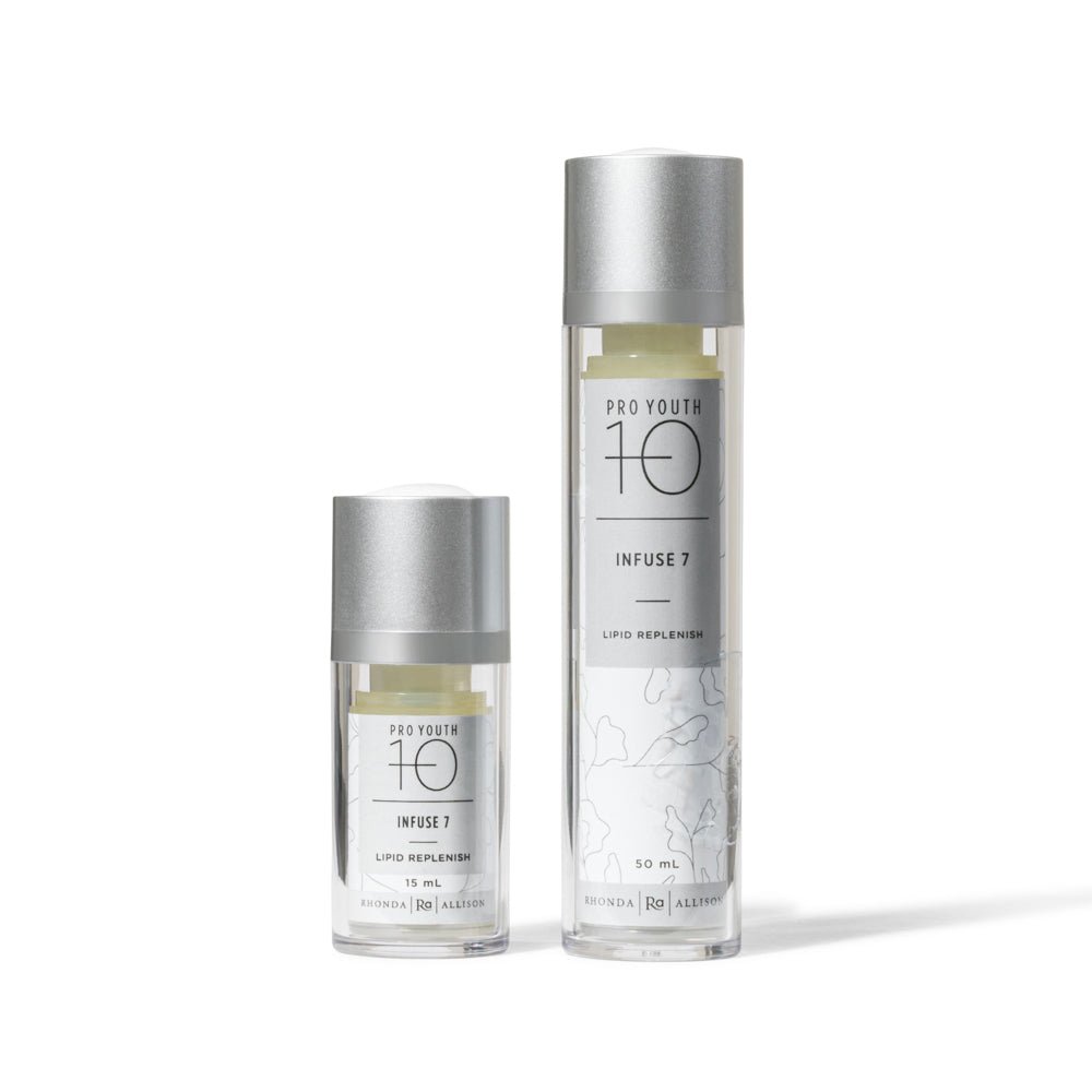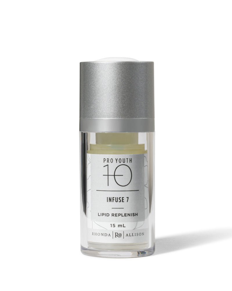 Rhonda Allison Infuse 7 is a nourishing oil serum that boosts healing, improves elasticity, and increases collagen production to restore and replenish mature skin.