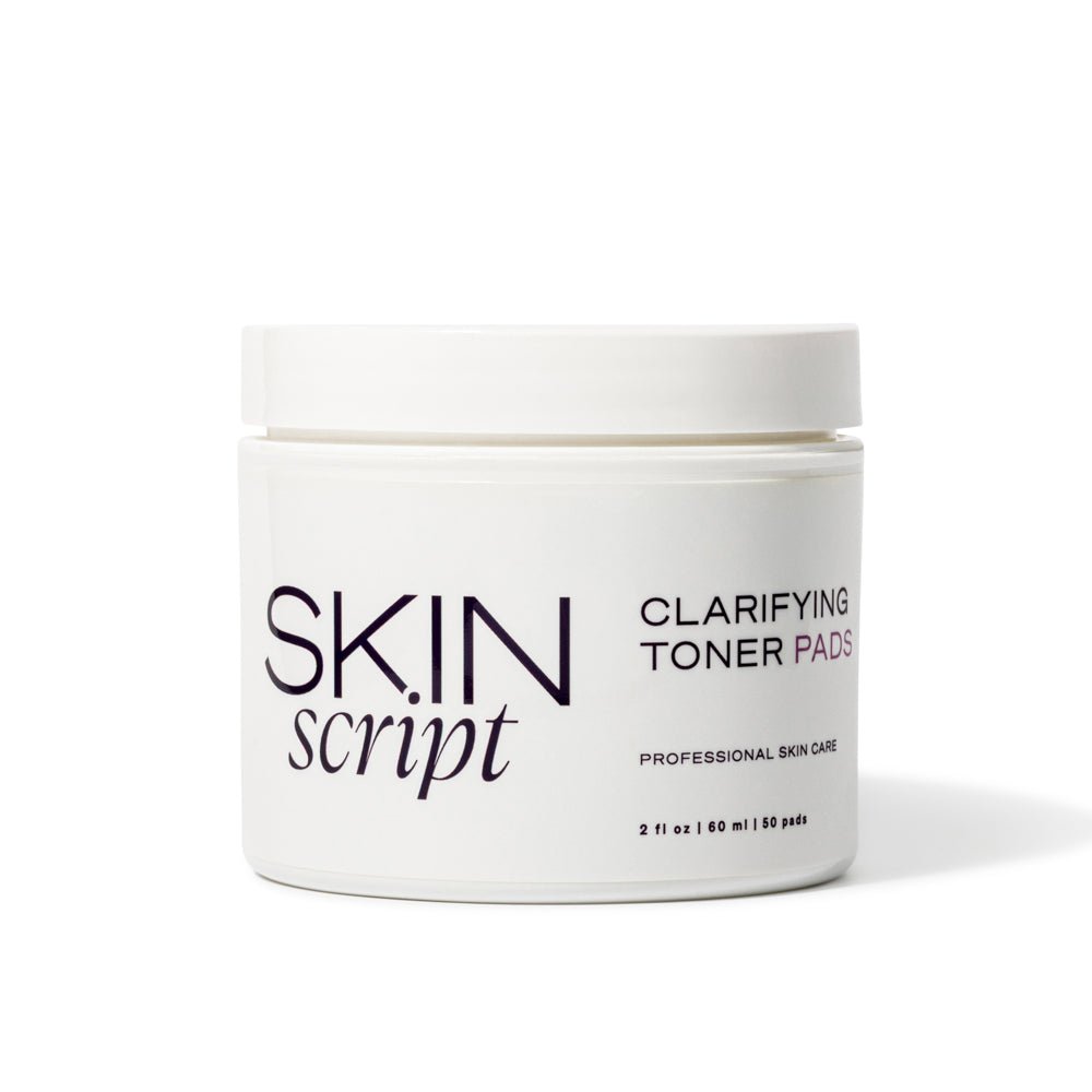 Skin Script Clarifying Toner Pads are a targeted acne treatment that utilize salicylic and glycolic acids to exfoliate the skin and banish blemish-causing bacteria.