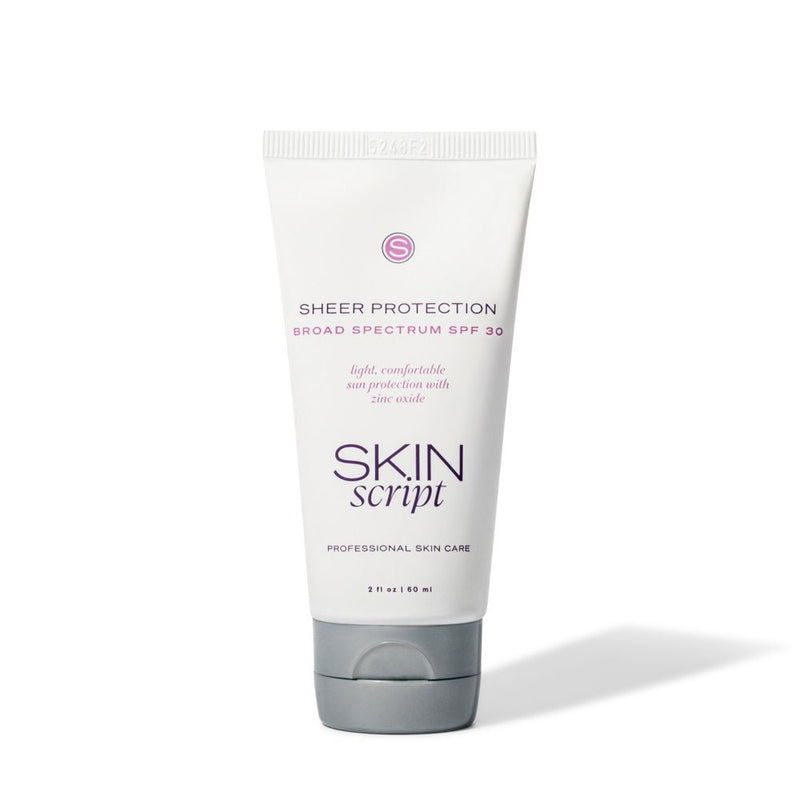 Skin Script Sheer Protection SPF 30 is a light cream, sheer mineral sunblock that provides both UVA/UVB protection for all skin types.